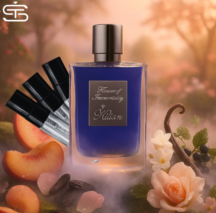 Imagínate paseando al alba por un jardín de melocotoneros cargados de frutas aún cubiertas de rocío, y bajo los ramas descubres un arroyo cristalino que refleja la luz del nuevo día. Al aplicarte Flower of Immortality, la apertura es ese momento preciso: melocotón blanco jugoso, nectarinas maduras, quizá un suspiro de coco de fondo que trae frescura inesperada. Luego, al desarrollarse, aparece un corazón floral-afrutado: iris ligera, rosas suaves, grosella negra que aporta un matiz vibrante, freesia que ilumina. En el secado, la base se vuelve más íntima: haba tonka, vainilla sutil, almizcle blanco y semillas de zanahoria que aportan un toque terroso-cremoso. La impresión general es de una fragancia fresca-dulce-acogedora, elegante sin estridencia, ideal para quien desea algo femenino pero versátil.