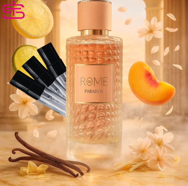 Es una tarde luminosa, tienes planeado un brunch con amistades en un jardín o una terraza. Te aplicas Rome Paradox y lo primero que llega es una explosión cítrica con frutas jugosas, chispeantes, que despiertan los sentidos como un rayo de sol. Después de ese arranque fresco viene un corazón floral delicado que aporta feminidad, sutileza y elegancia — algo suave, no invasivo, ideal para ambiente relajado pero cuidado. Con el tiempo evoluciona hacia una base cálida: vainilla cremosa, almizcle y maderas suaves que arropan la composición, haciendo que permanezca, ofreciendo confort y dulzura, sin dejar de sentirse elegante.