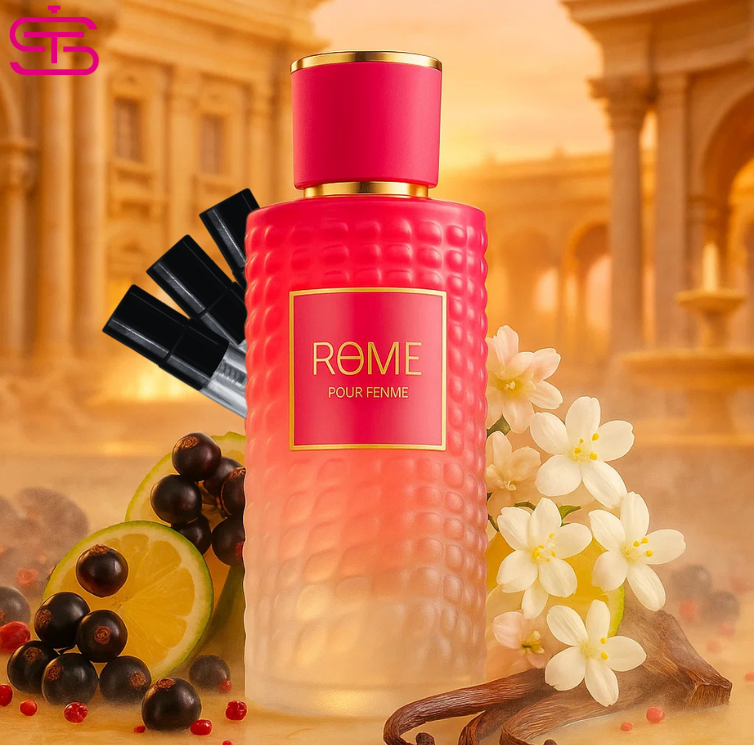 Imagina este escenario: es una mañana soleada de fin de semana. Te despiertas con ganas de verte linda, fresca, con estilo “chica fresa”, y tienes citas ligeras: brunch con amigas, paseo por la ciudad, fotos en un jardinito. Rocías Rome Pour Femme, y primero notas una explosión frutal chispeante: grosella negra jugosa, bergamota luminosa, con un toque de pimienta rosa que aporta carácter. Esa apertura te pone en modo “alegre, femenina, sofisticada”.