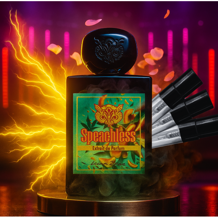 Piensa en un jardín bañado por el sol, donde el aire se llena de la dulzura chispeante del melocotón y la frescura vibrante de los cítricos. Al aplicarte Speachless, primero llega una explosión cítrica —bergamota, pomelo rosado, naranja dulce, limón, lima y lichi— cargada de energía. Esta apertura da paso rápidamente a un corazón dominado por durazno (peach) jugoso y casi candied, envuelto en una mezcla floral rica y compleja con jazmín, osmanto, heliotropo, rosa y más. Finalmente, la base se torna cálida y herbal: cannabis refinado, vetiver, pachulí, sándalo, elemi, vainilla, almizcle blanco y ambrette crean una estela dulce, verde y envolvente.